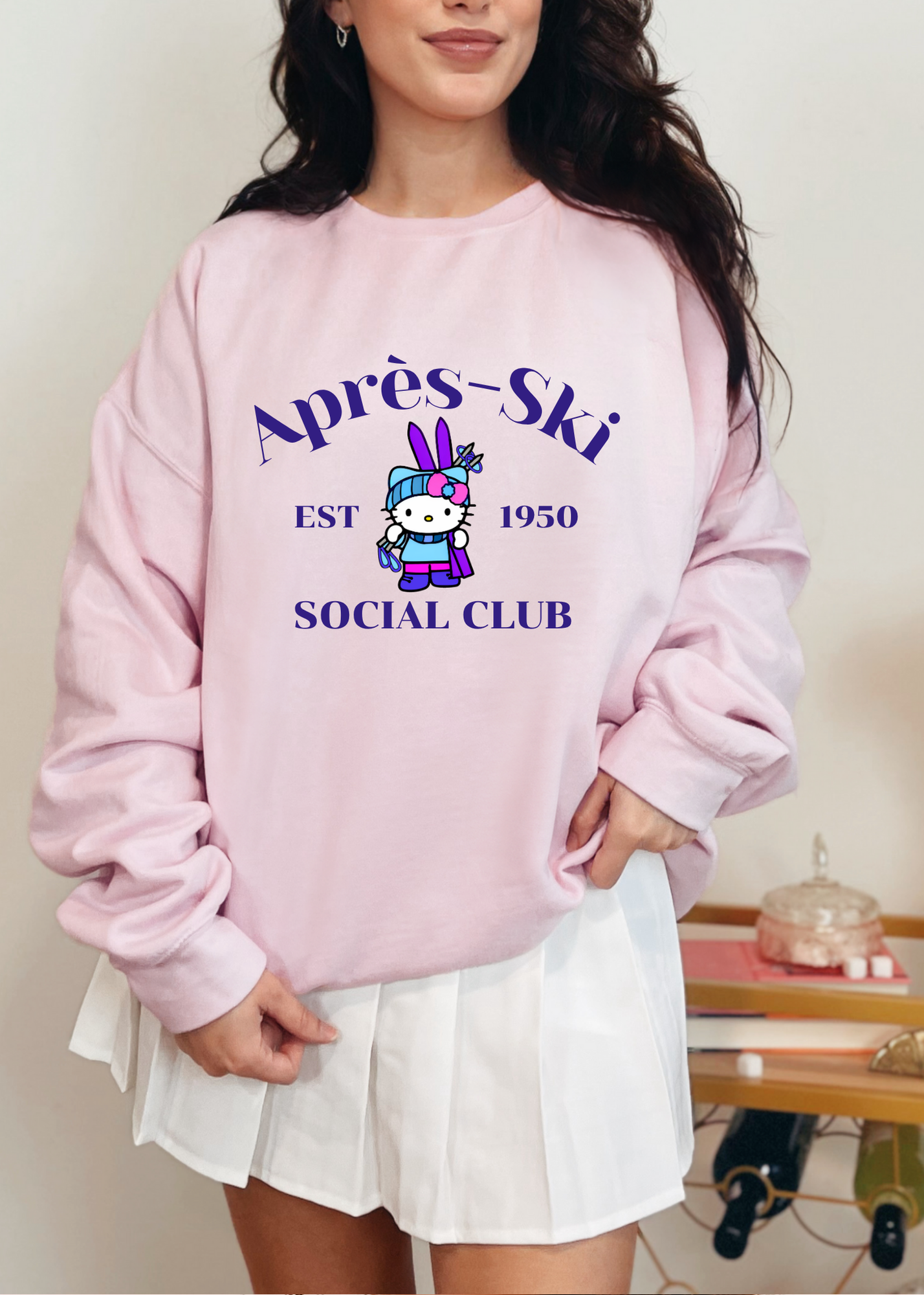 Whether you're hitting the slopes or just sipping cocoa in style, the Après-Ski Social Club piece is a Cobbler Lane original made for your winter aesthetic. Featuring an adorably bundled-up ski bunny (with serious retro charm), this cozy pick is perfect for snow days, lodge hangs, or just flexing your chill-girl energy.